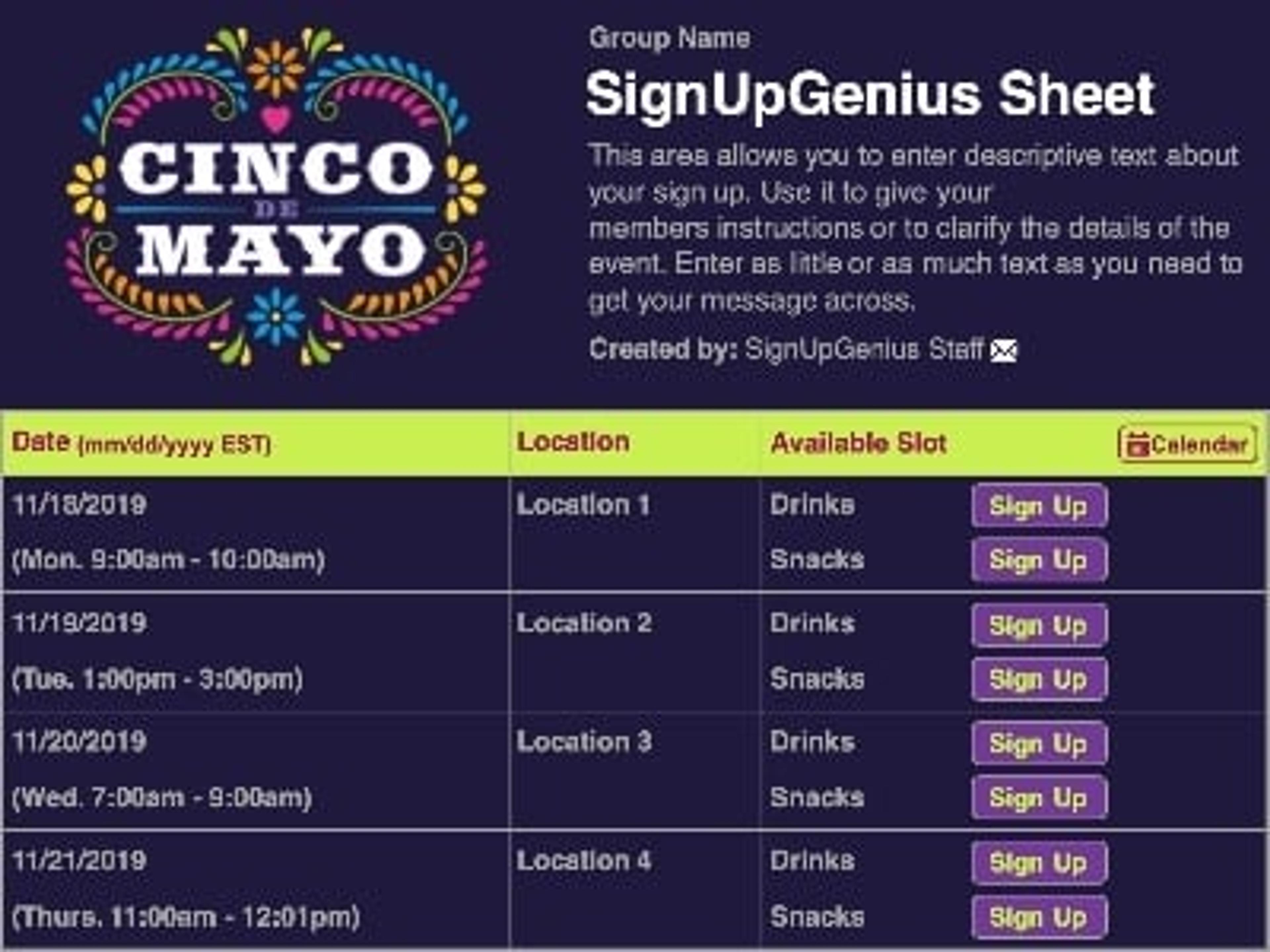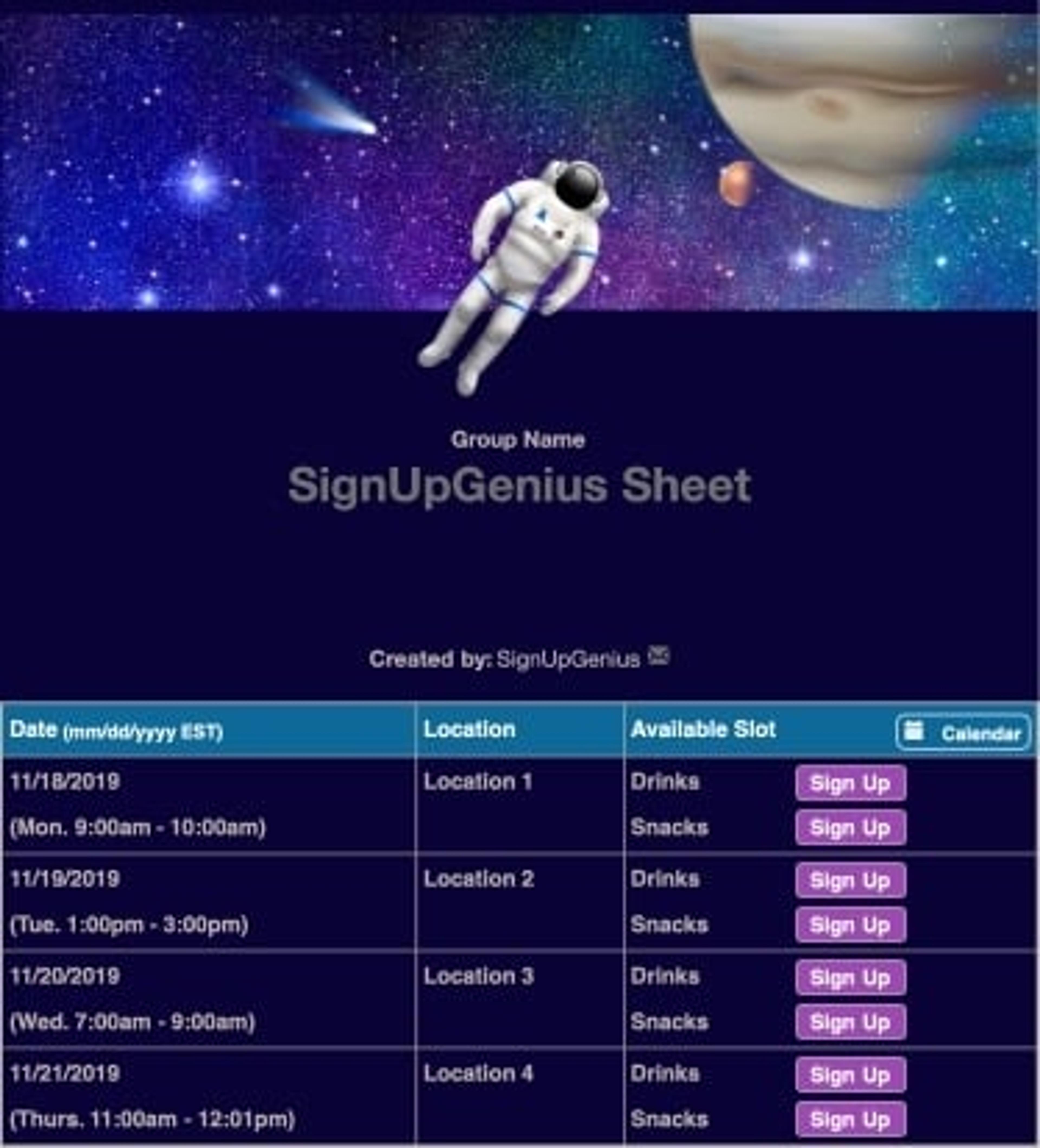 I love SignUpGenius' ease of use and functionality. In just the last few weeks, I have used SignUpGenius to help manage Girl Scout outings, Secret Santa sign up, a potluck and a volunteer opportunity at our preschool. The possibilities are endless. I've tried other sign up websites and find SignUpGenius by far the best fit for my purpose.