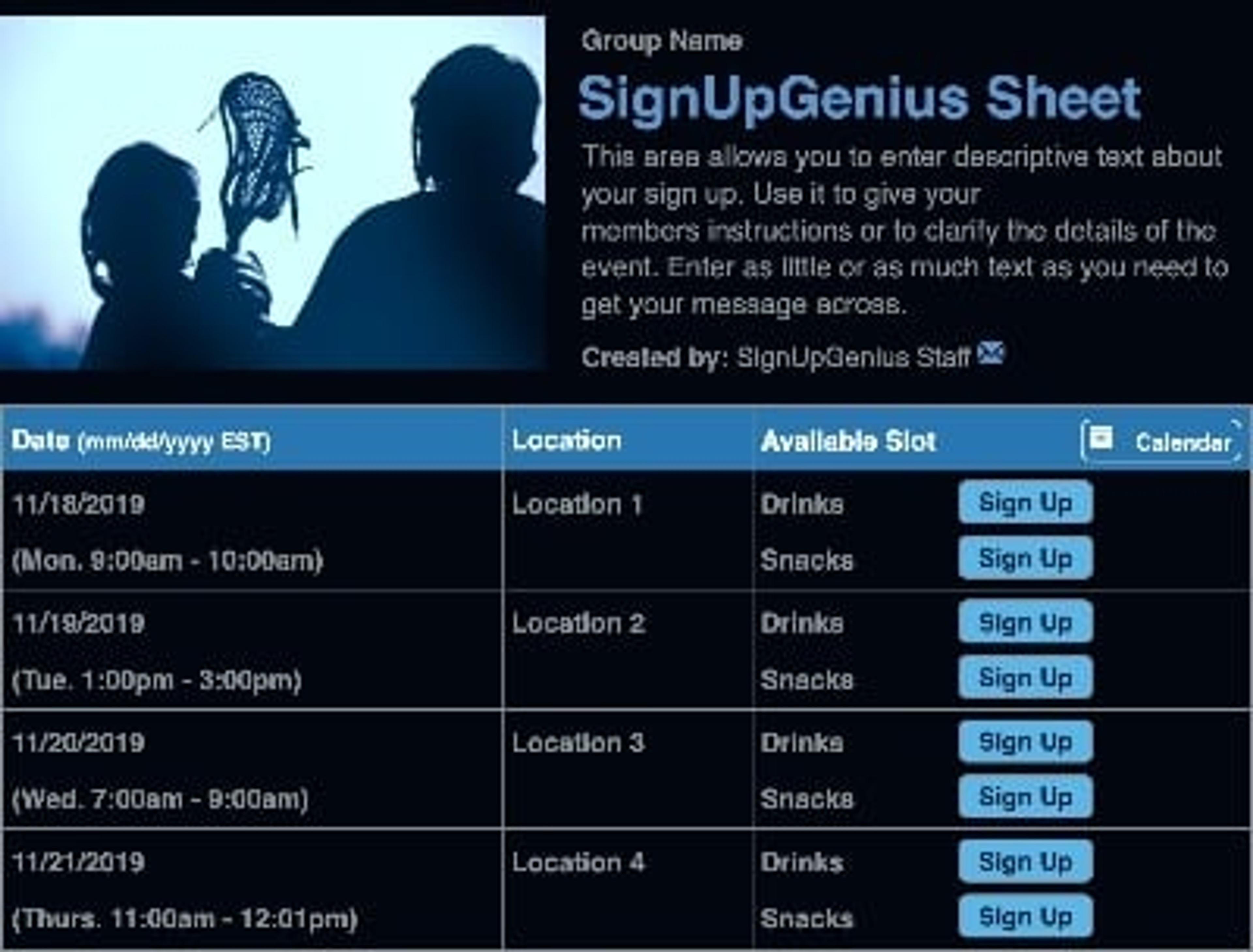 All SignUpGenius creators can choose from hundreds of our single-photo layout themes.